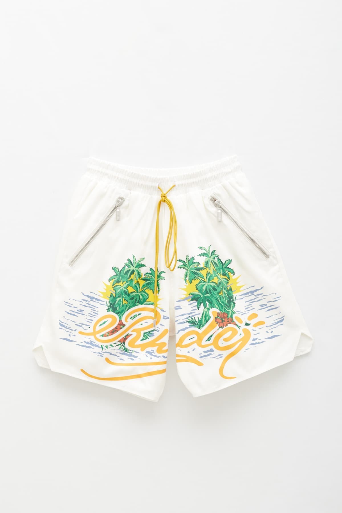 RHUDE WHITE PALMS LOGO SHORT TROUSER
