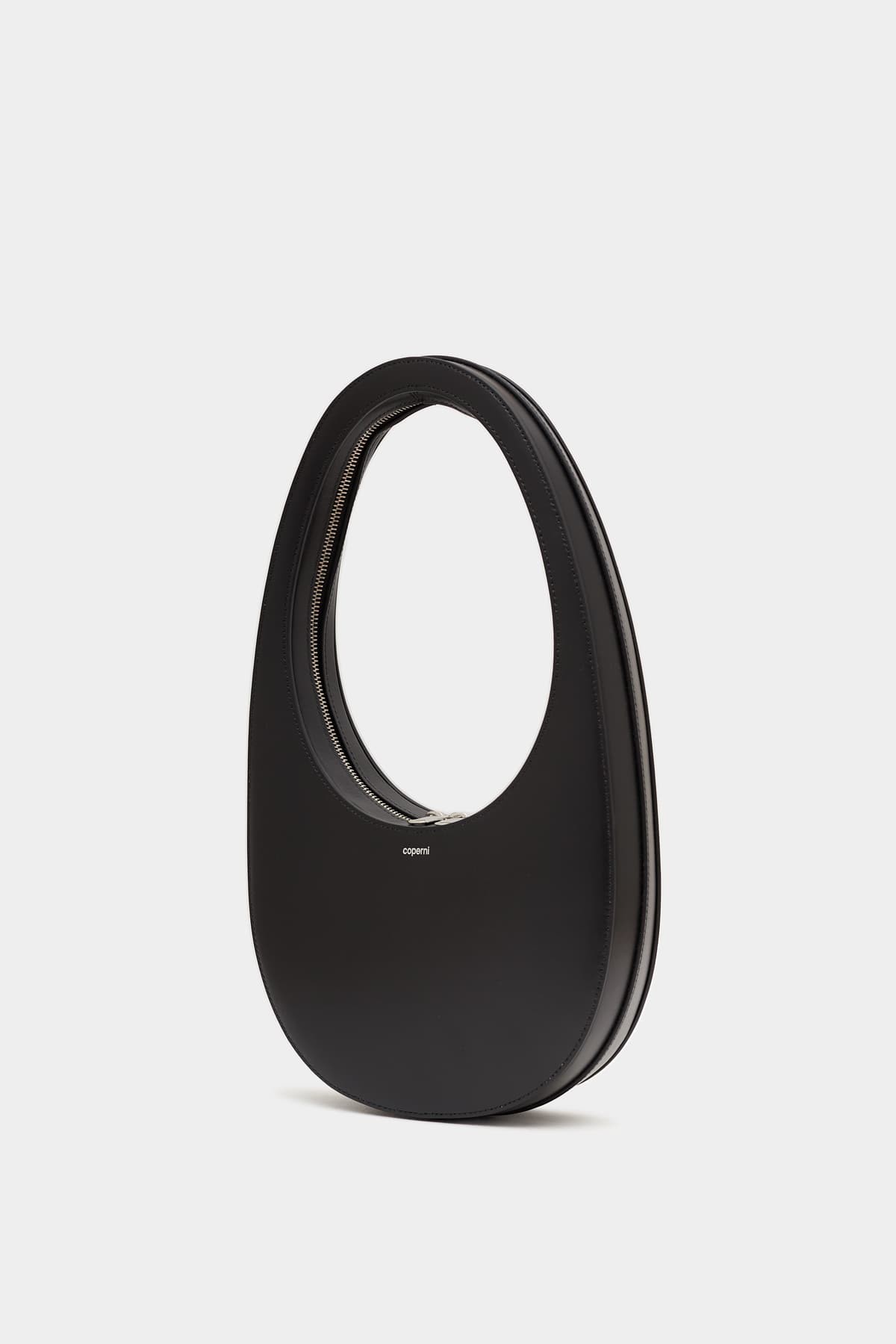 Swipe bag in black leather with the COPERNI logo printed on it.