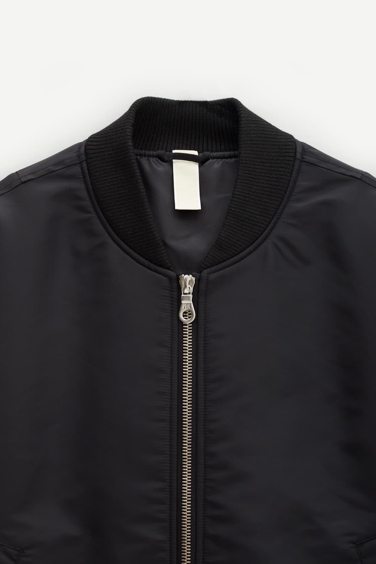 Relaxed fit bomber jacket. Neoprene padding, heavy nylon, side pockets, and double RIRI zipper.