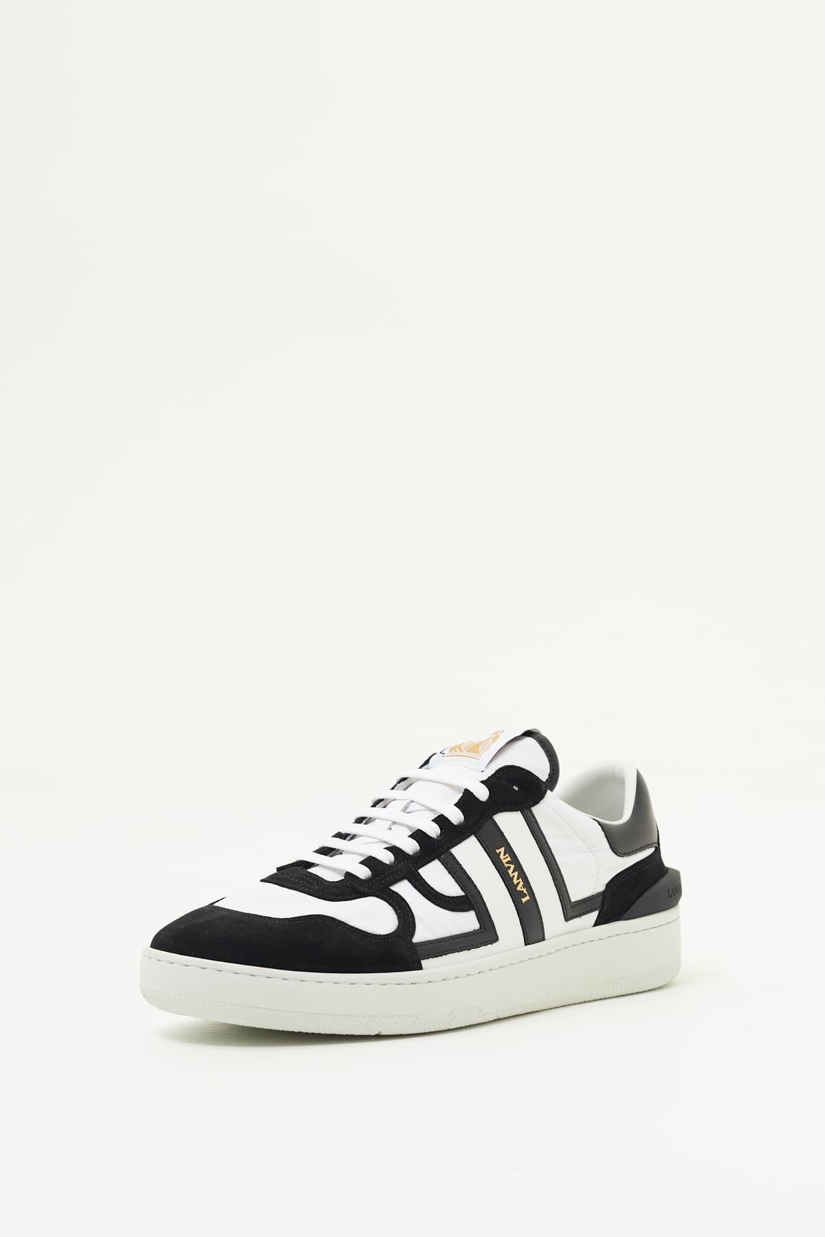 Clay leather and mesh sneakers. Almond toe. JL logo on the sides and Lanvin logo. Label with the Lanvin logo on the tongue. Lace-up closure.