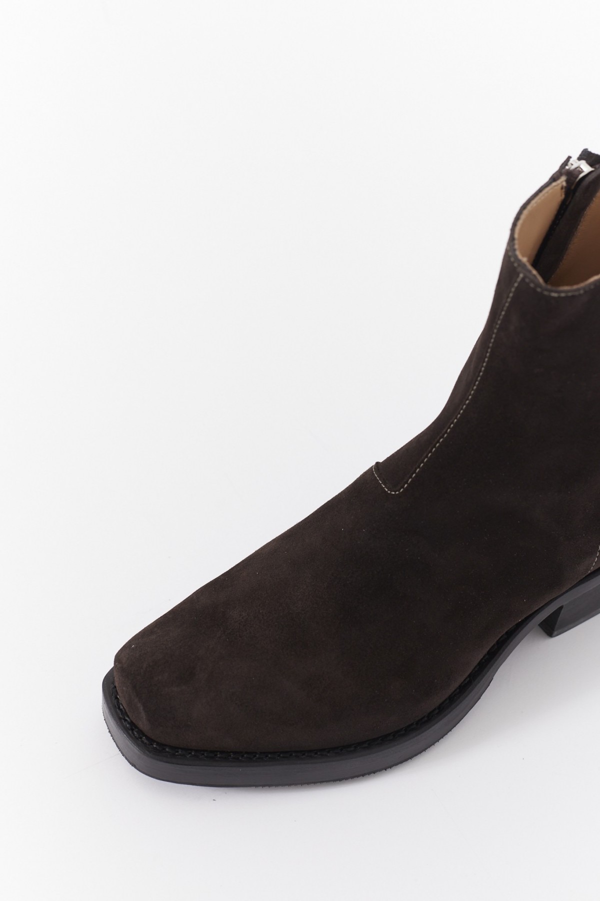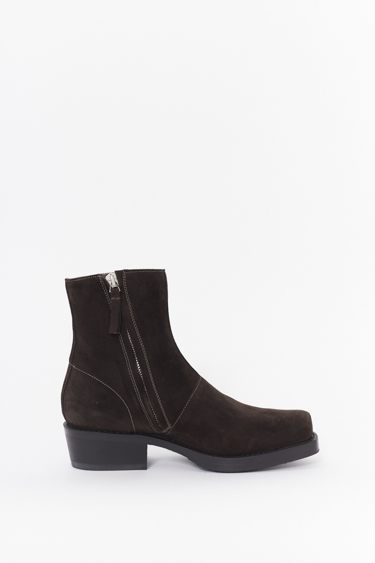 Brown ankle boots in premium leather. Western style. Almond toe. Inner zip closure. Stacked leather cuban heel.