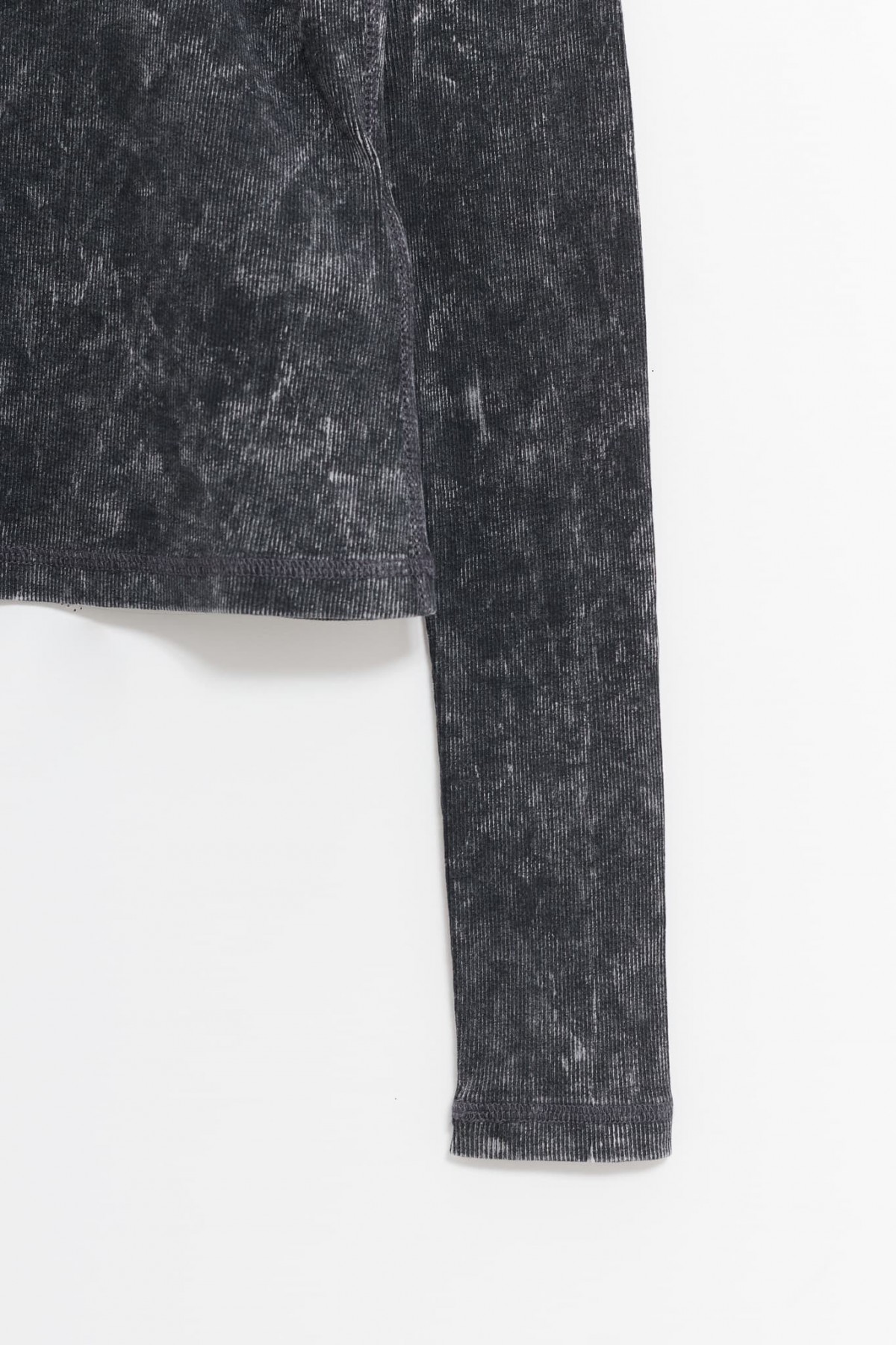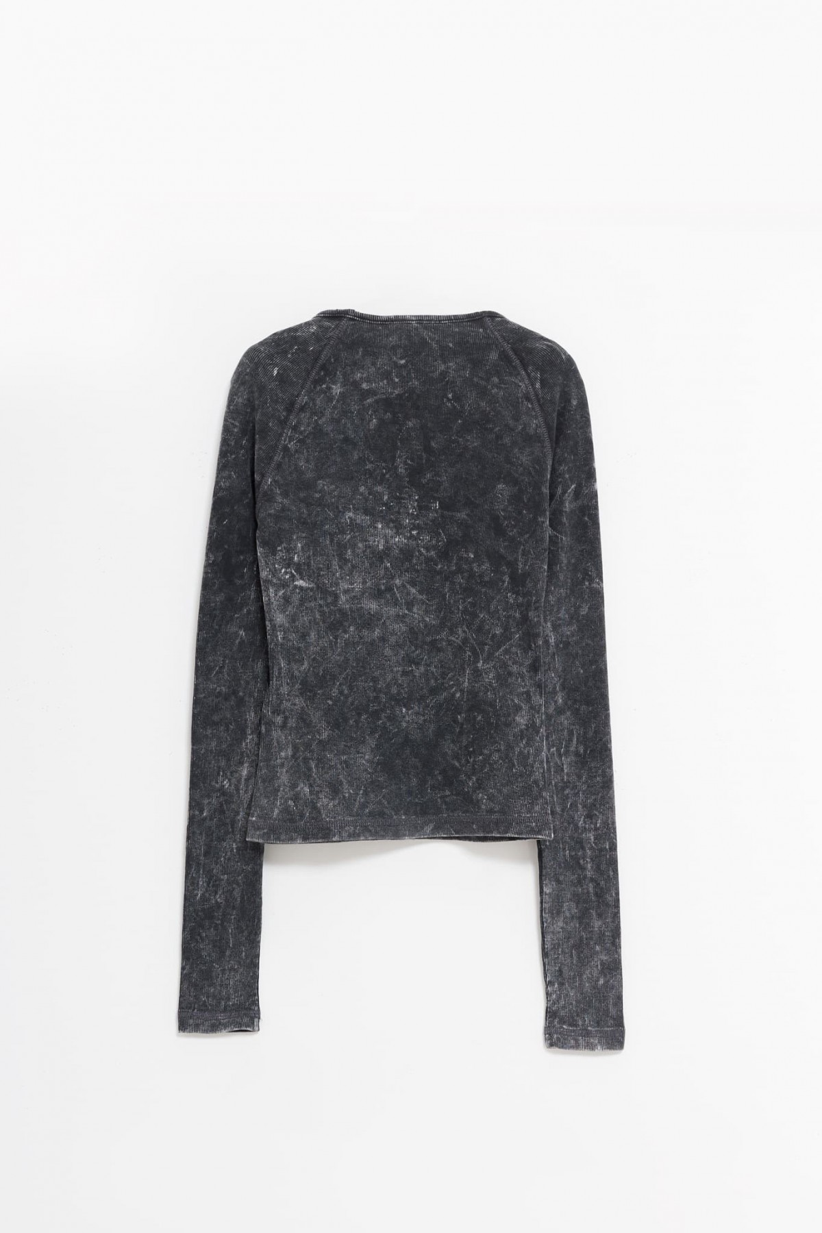 Fitted long sleeve top. Ribbed cotton. Cut-out silhouette with crisscross straps. Hand wash.