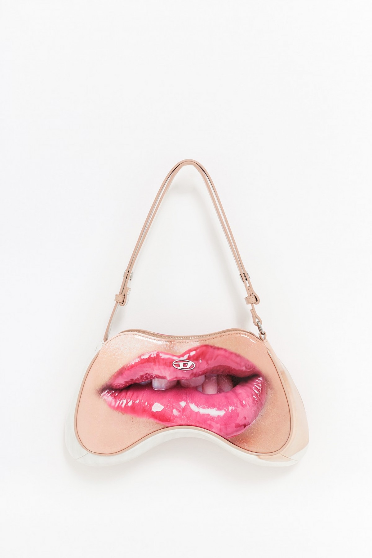 Shoulder bag. Soft and shiny finish. Adjustable strap. Inspired by video game controllers. Metal D logo. Zippered pocket. Exterior zip closure.