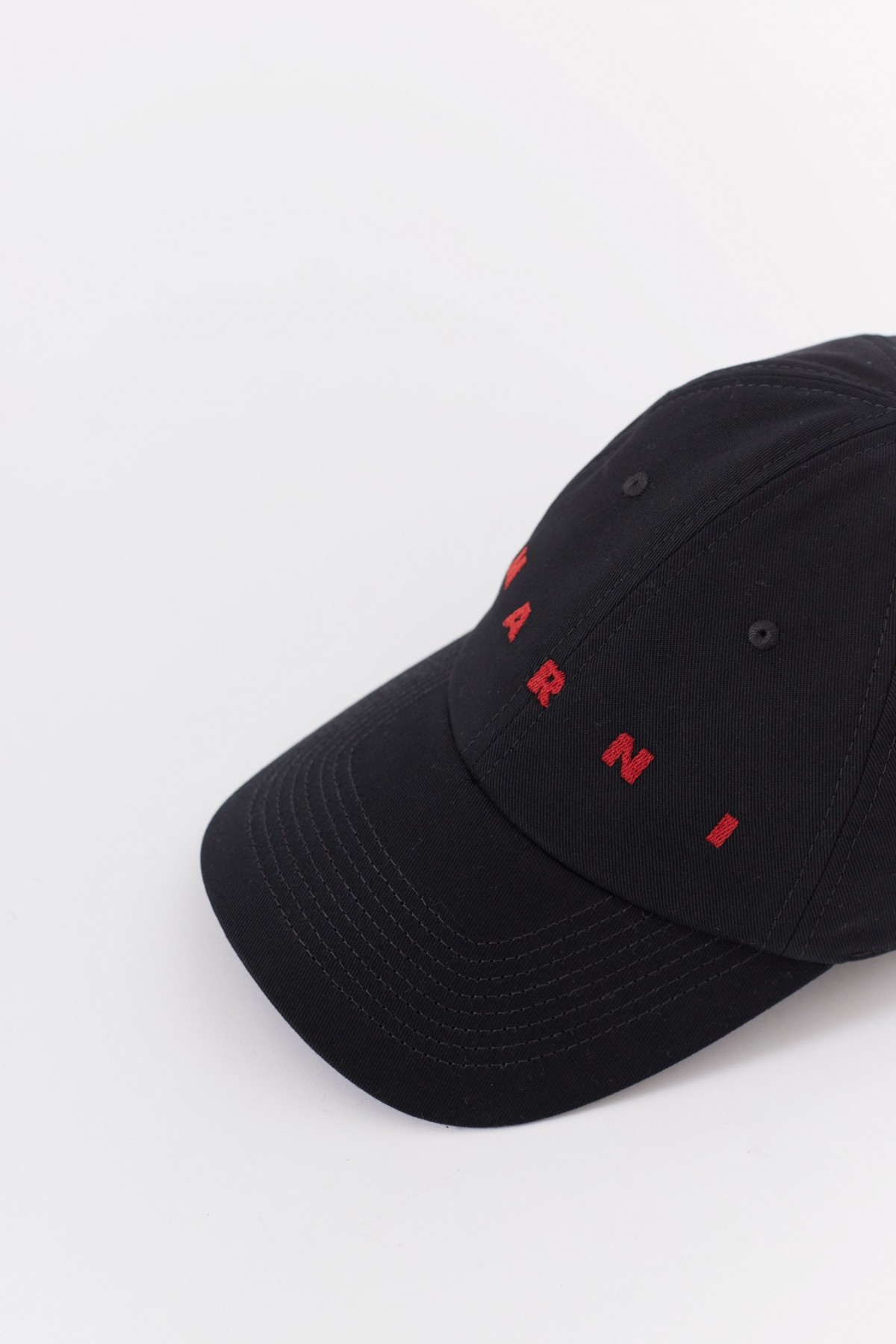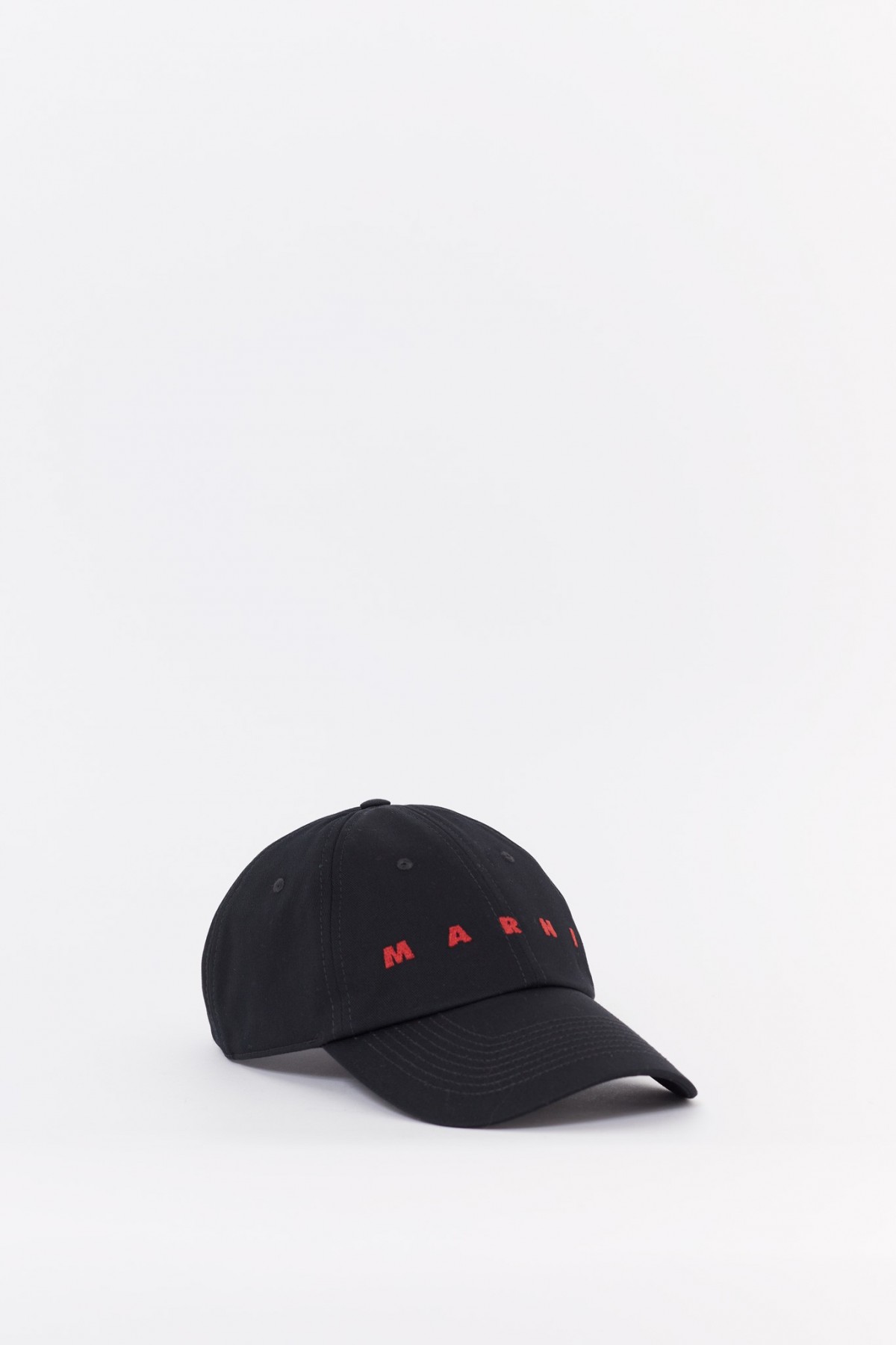 Baseball style cap. Black organic gabardine. Embroidered logo.