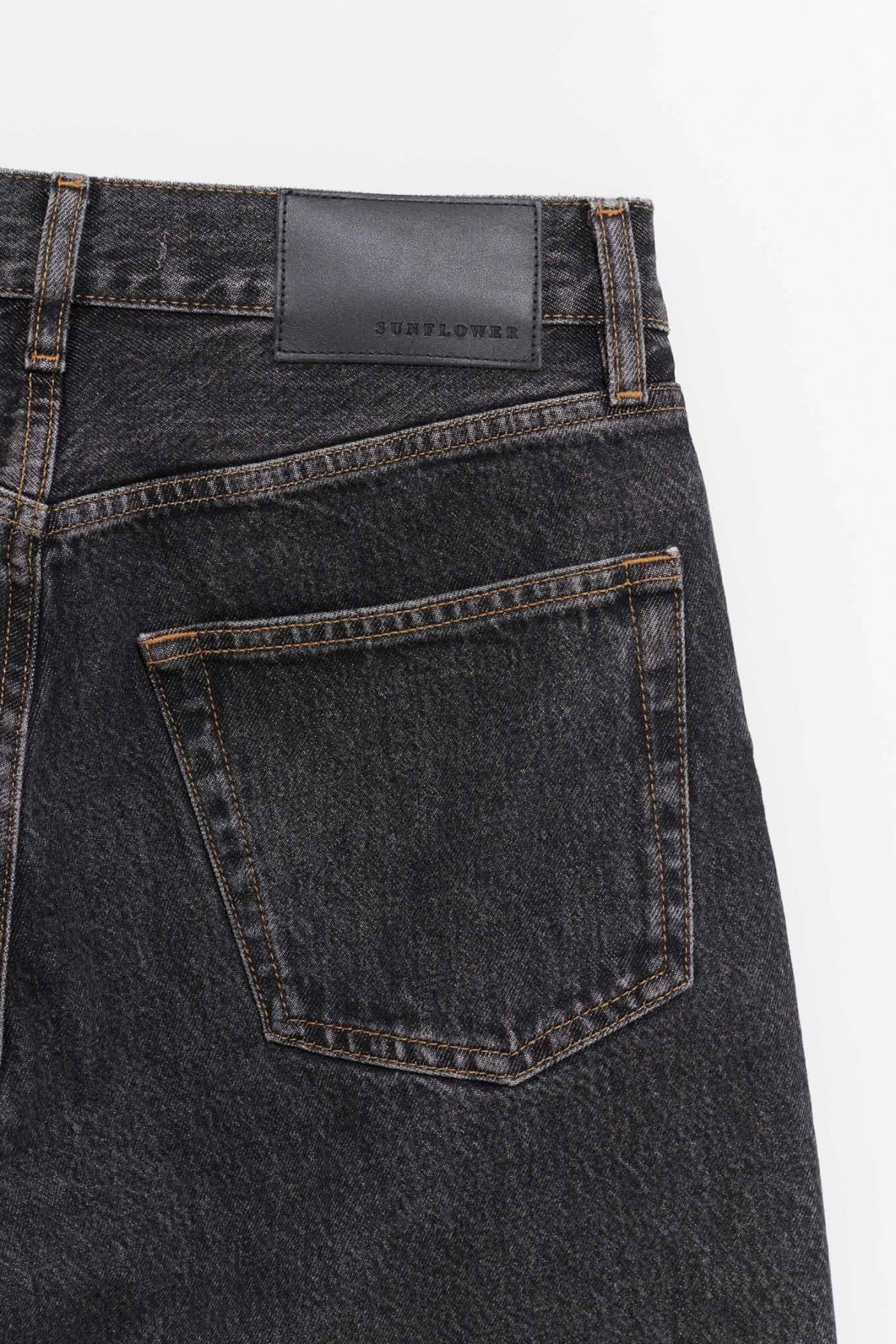 Loose fit washed denim. Tobacco contrast stitching. 100% organic cotton 14 oz. Marble effect inspired by the 80s. Stainless steel trims.