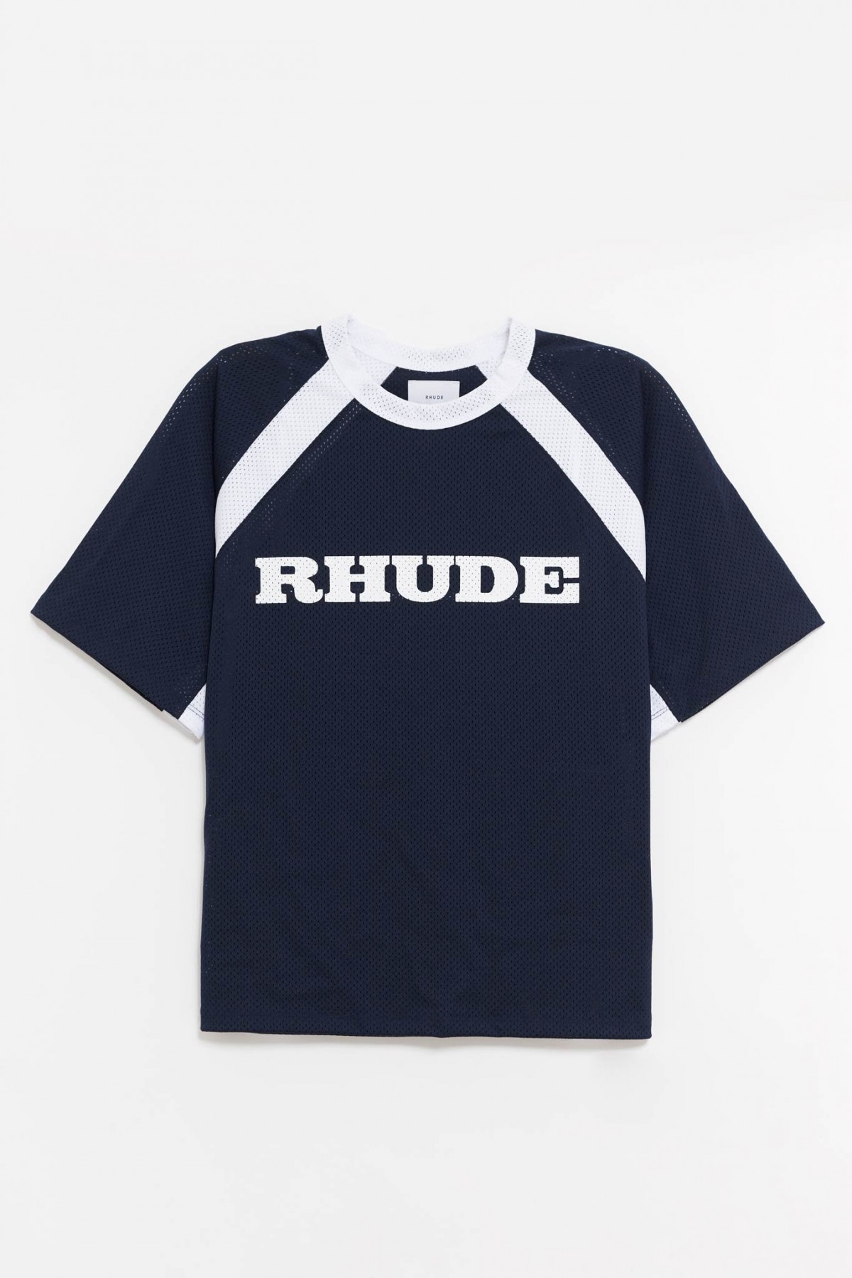 RHUDE NAVY WHITE MESH T-SHIRT IAMNUE