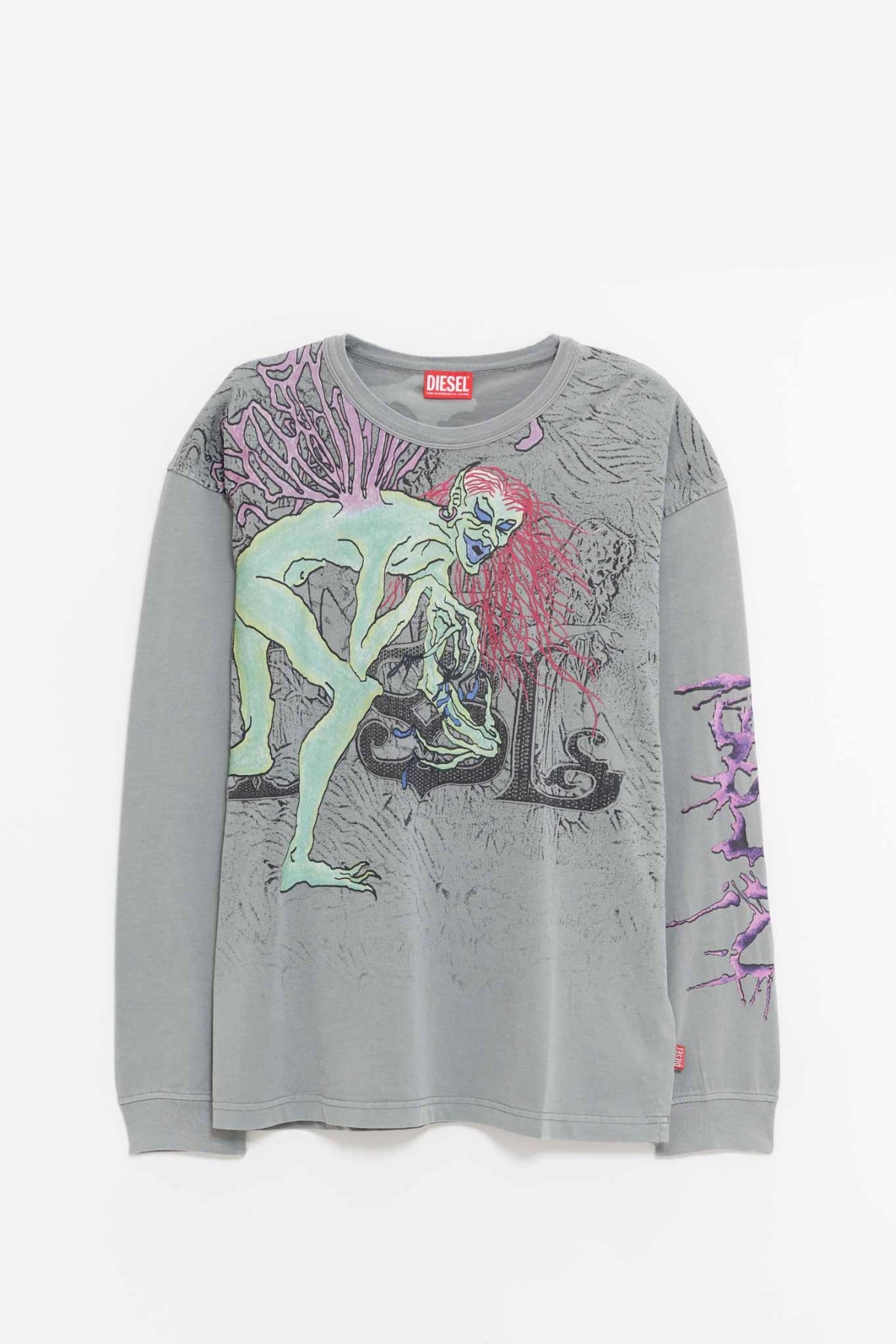 Long-sleeved T-shirt. Cotton jersey. Loose fit. Garment-dyed. Hand-drawn effect graphics and logo motifs inspired by tattoo culture.