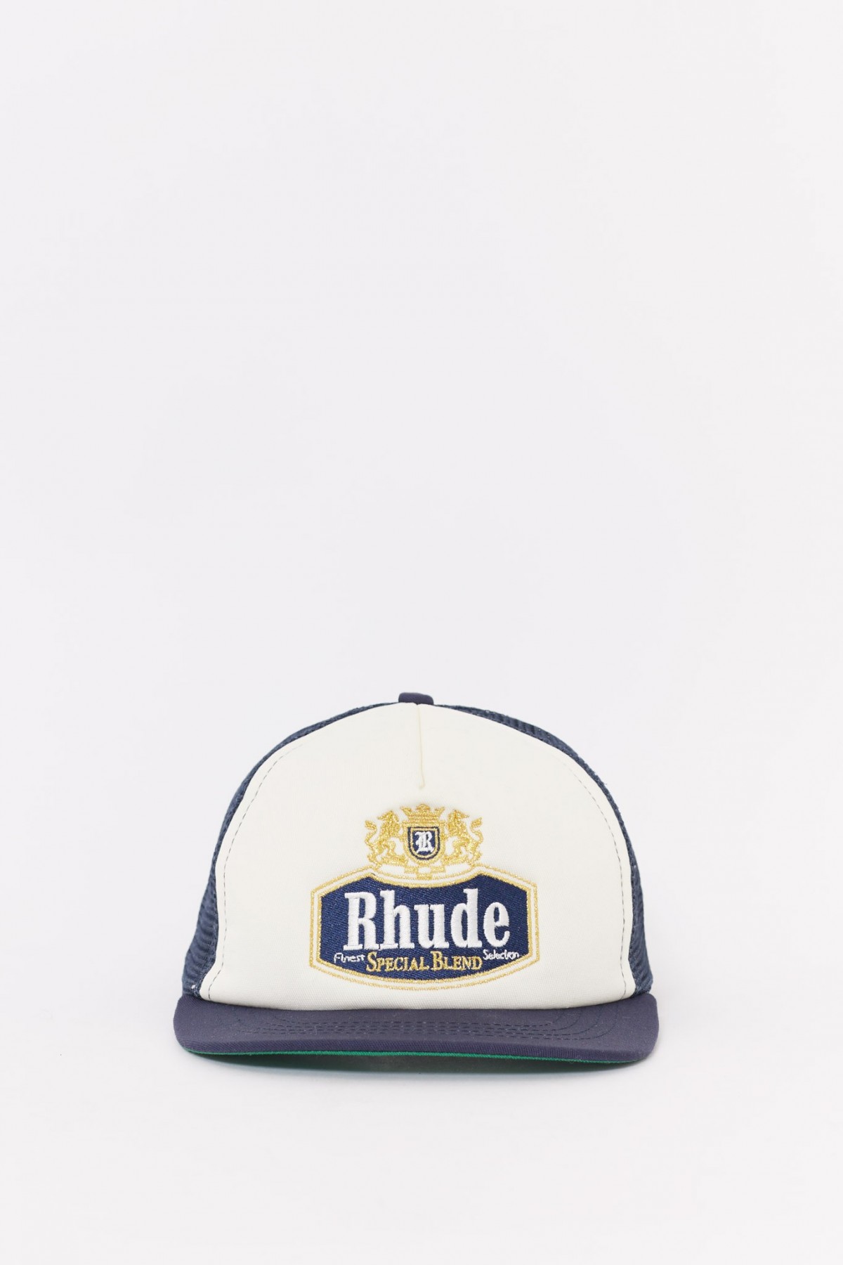 RHUDE NAVY SPECIAL BLEND TRUCKER HAT IAMNUE