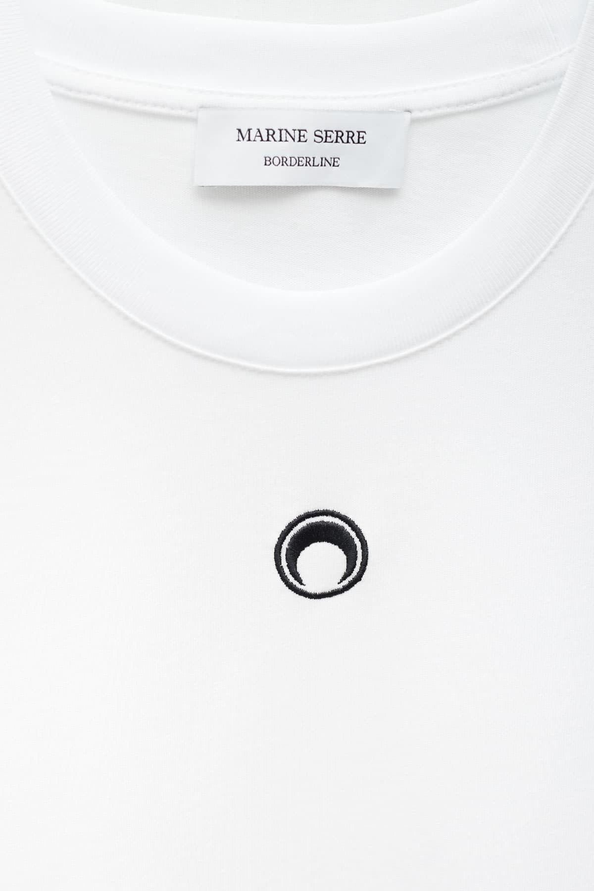 MARINE SERRE WHITE EMBROIDERED LOGO T-SHIRT