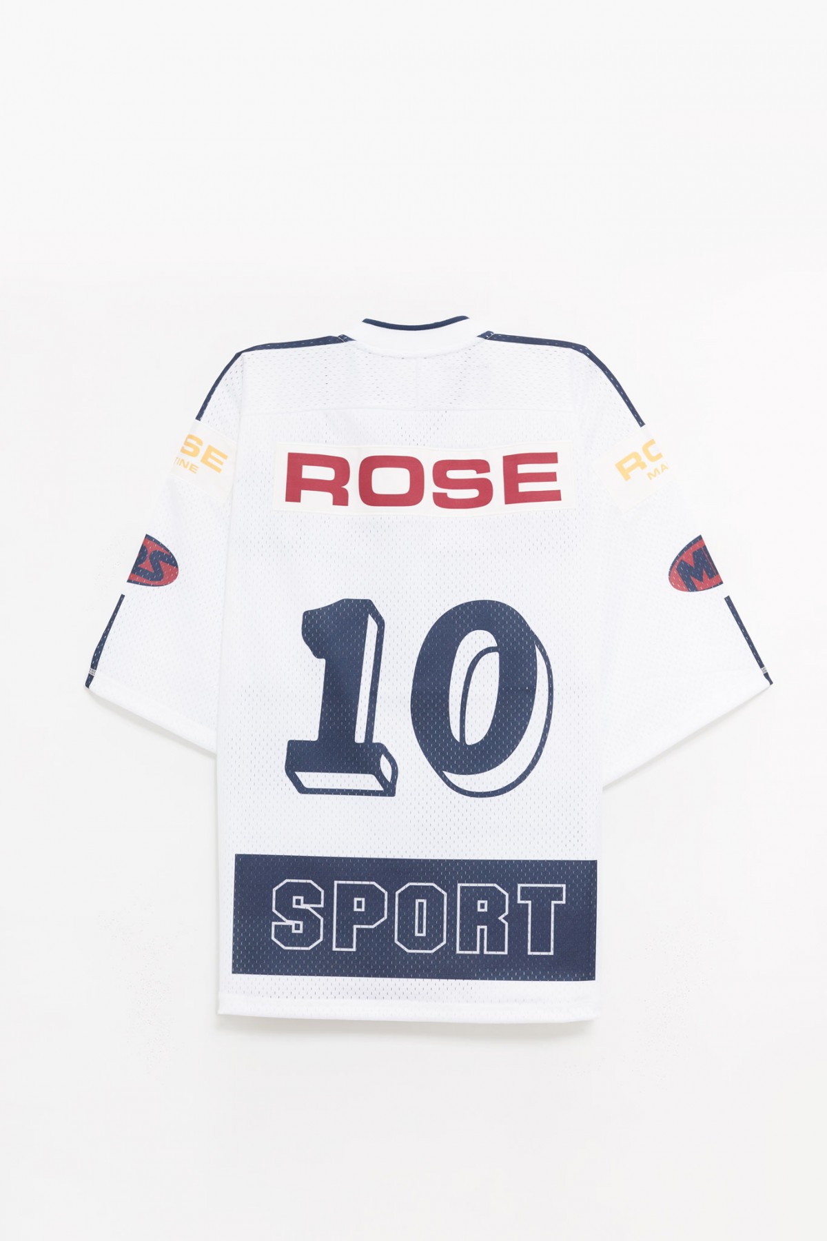 MARTINE ROSE WHITE NAVY OVERSIZED HOCKEY T-SHIRT